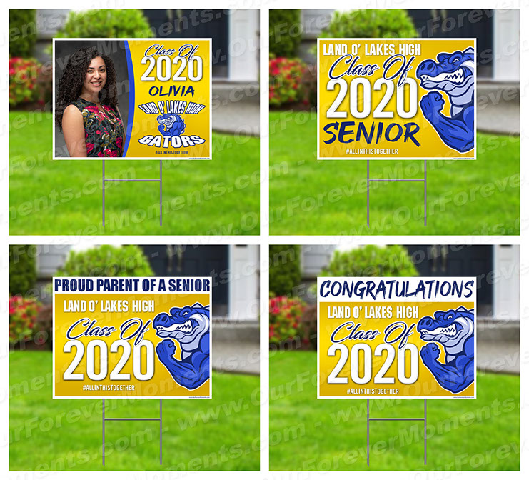 Your 2020 GRAD Yard Signs will include a Full Color Design with your Student's School Name & Colors! Custom designs are available to add in your Student's own Photo and Name. Interested in that option? After your purchase, be sure to email Info@OurForeverMoments.com with your Student's Photo and we'll get right to work on their sign! Based locally right here in Spring Hill, you can also be assured that your order is being designed and produced by our family owned company.